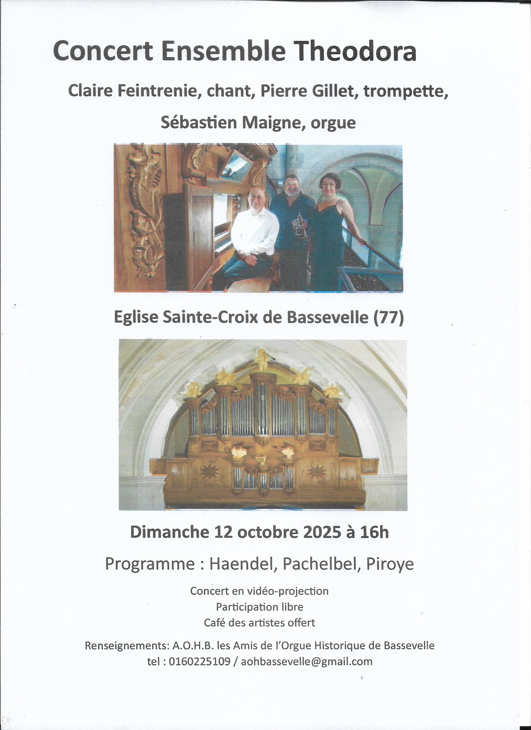 Le 12 octobre 2025 Voici le prochain concert d’orgue à Bassevelle qui s’annonce pour le dimanche 12 octobre à 16 h – »…